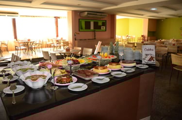Almoço com Sabor de Goiás: Pratos típicos com aquele toque caseiro que só a nossa terra tem, além de buffets variados com opções leves e saudáveis.